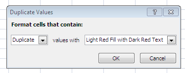 - Here you can specify how you want the duplicate data to be highlighted, by giving a background colour or a text formatting etc.