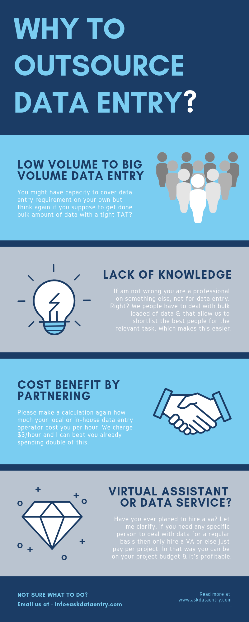 Don’t forget that your data entry service provider works in the same way as a virtual assistant for data entry but they are a team rather than just one person. They deliver top notch results in a timely way with high level goals pertaining to accuracy and cost saving. Be assured that remote data entry company can save money and time on your outsourcing.