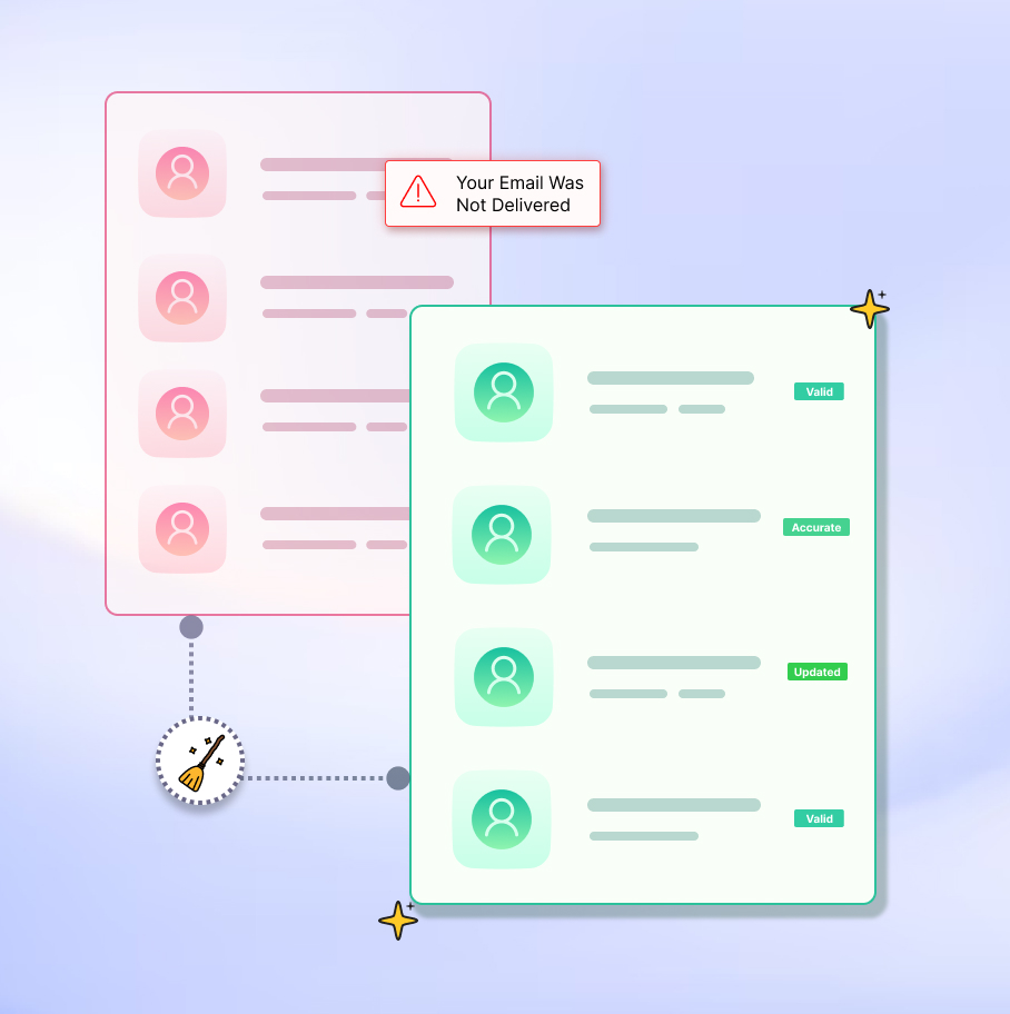 Incorrect data manipulates the data algorithms and produces incorrect results. Prevent it immediately by opting for our data cleansing services. We help you boost your operations, maintain data accuracy, maximize response rate, and minimize bounce rate with our services. Let’s fill out this form and take action against bad data now!
